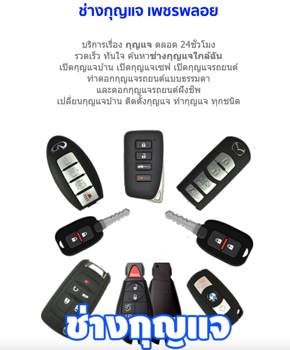 อันที่จริงแล้วลักษณะของช่างทำกุญแจและบริการขึ้นอยู่กับสถานที่ ในช่วงเวลาของความต้องการก็จะแนะนำให้ติดต่อที่ต้นทุนต่ำช่างทำกุญแจที่อยู่อาศัย,ที่สามารถช่วยในการแก้ไขปัญหาที่เกี่ยวข้องกับการล็อคออกปัญหา